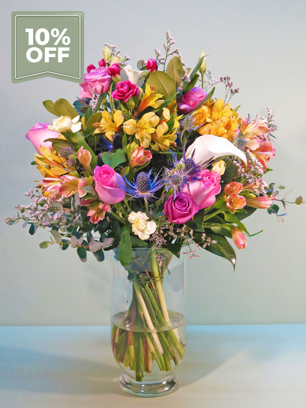 Ideal para buffets e recepções. Mix de 40 hastes de flores e folhagens. Aproximadamente 50cm de altura por 35cm de largura.